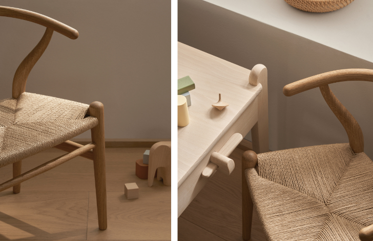 1949年にウェグナーによってデザインされたYチェアがお子様に適したサイズとして初めての発表となりました。