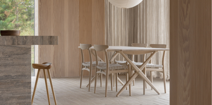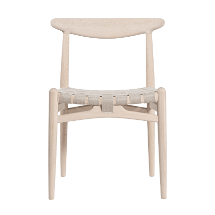 この度の復刻ではウェグナーのオリジナル図面を忠実に再現し、リネンのウェービングで手織りされた座面と、ウェービングの張力を維持するためにデザインされた特徴的なフロントレールが形作られたのです。