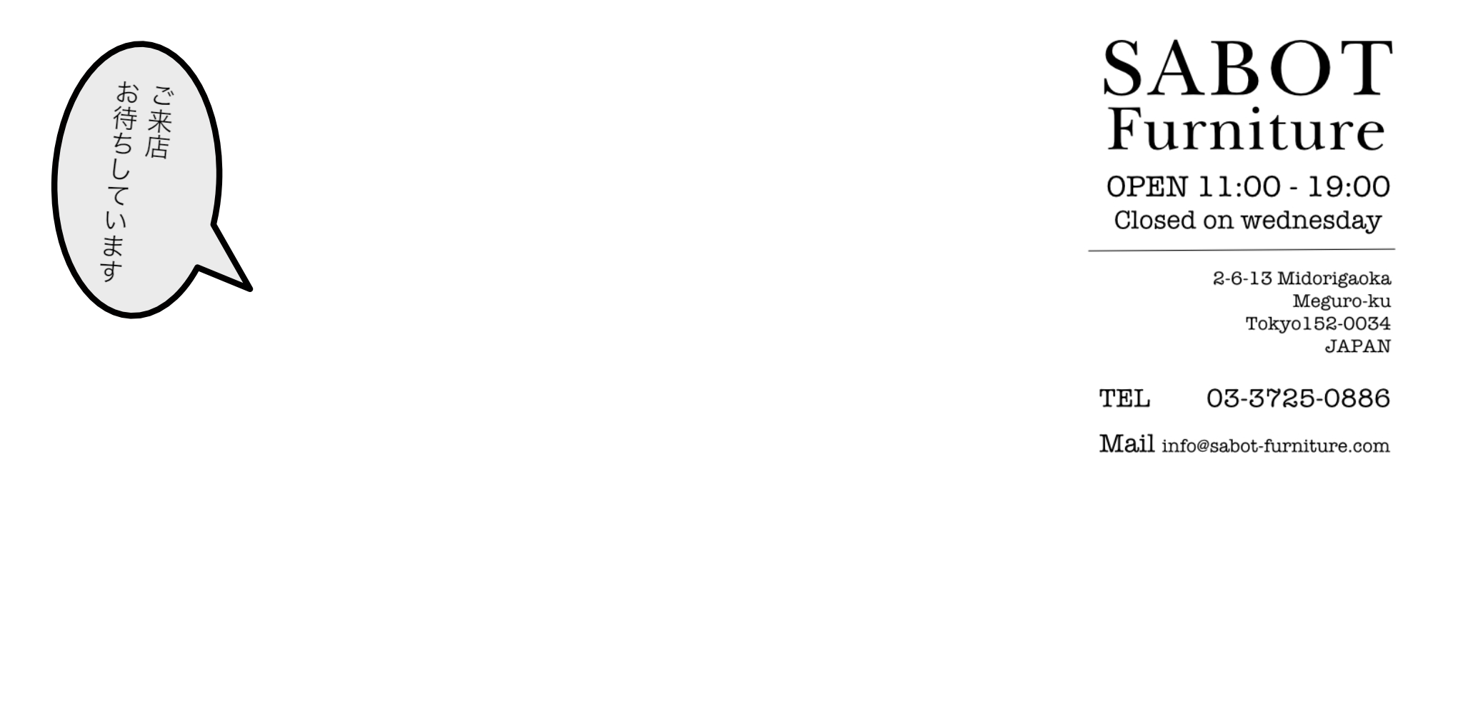 SABOT Furnitureはサボ・ファニチャーと読みます。