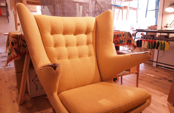 私はファブリック張りに関してはあまり存じ上げないのですが、北欧ではファブリック張り職人や家具修復職人も指物職人と同じく、高度なマイスター資格がございまして、もちろんそれら資格を持った職人さんは、王室や大使館から家具修復の依頼が来ることもあるくらい高い技術を持っています。