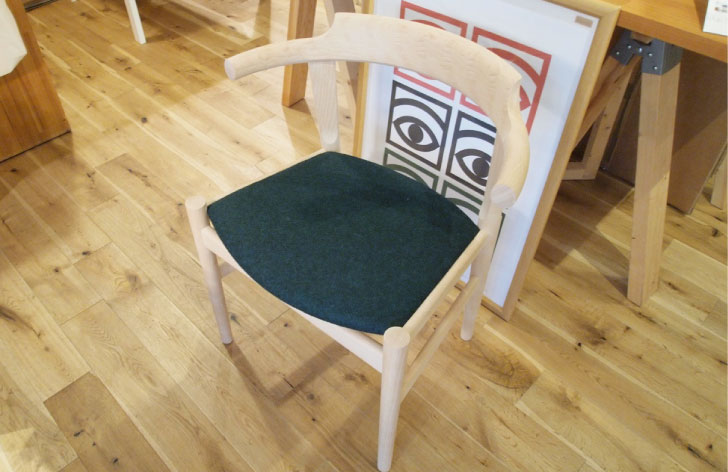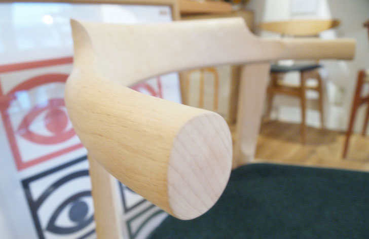 さて、そんな「PP58」ですが、当店展示として購入したものは、お写真にあるビーチ材、ソープ仕上げ、ファブリック座面仕様です。