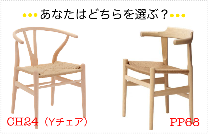 そこで、今回は当店で最もどちらにしようか悩まれる方が多い、「Yチェア」と「PP68」について、それぞれの特徴を挙げてみますので、ご購入の際には是非参考にしてくださいね。