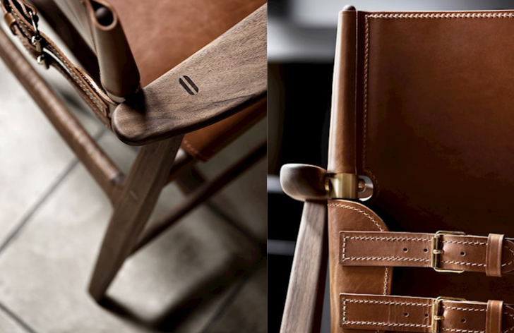 デザインは「HUNTSMAN CHAIR」と同様に木製のフレームに、座面と背面はレザーを使った仕様となっており、デザインエッセンスも同じです。