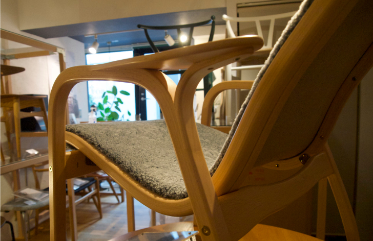 「Yチェア」がダイニングチェアであるのに対して「LAMINOチェア」はラウンジチェア(リビングでくつろいで座る椅子)であることも、住環境の違いもあり、日本では北欧ほど一般的ではないのかもしれません。