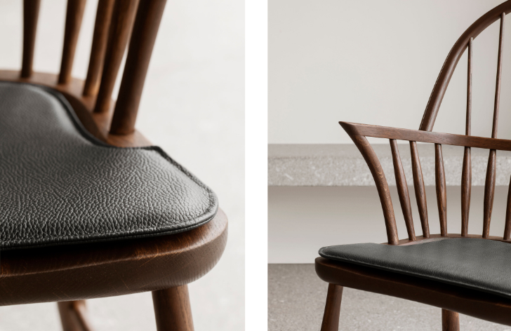 「FH38」も同様で、ウィンザーチェア特有の構造の耐久性を考えると、お選びいただける木材がオーク材のみというのは、硬度が高く強度的に申し分ない最善の選択と言えますね。