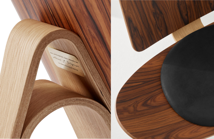 柔らかなラインと有機的なフォルムは、ウェグナーが木材の可能性と課題の両方に深く精通していたことを示しています。