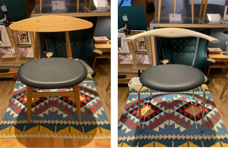 この度発売されるCH07アニバーサリーエディションは、通常のシェルチェアとは異なり、背面と座面の張地を除いた板座面タイプと座面のみに張地を施したパディングタイプの2種類となります。
