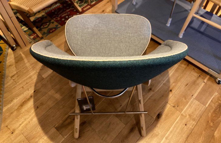 デザインの要となるアーム部分は、ウェグナーの「PP240 カンファレンスチェア」に近い印象を受けますが、イージーチェアらしくより快適に使えるよう、外側へのラインを大きく取っており、上からみた時の曲線の美しさが際立ちますね。