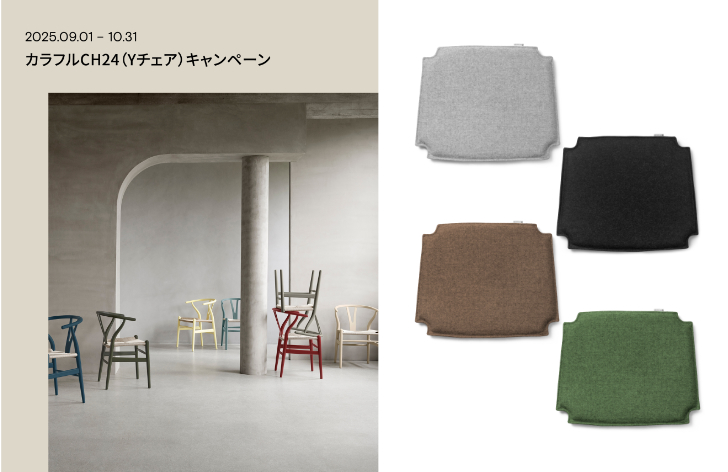 2025年9月1日(月)から10月31日(金)の期間中にカラーのYチェアをご購入の方へ、Yチェア専用のチェアパッド(新製品のメランジ生地)を1枚プレゼントいたします!!