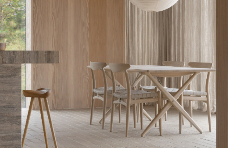 この度の復刻ではウェグナーのオリジナル図面を忠実に再現し、リネンのウェービングで手織りされた座面と、ウェービングの張力を維持するためにデザインされた特徴的な座面下のフロントレールが形作られたのです。