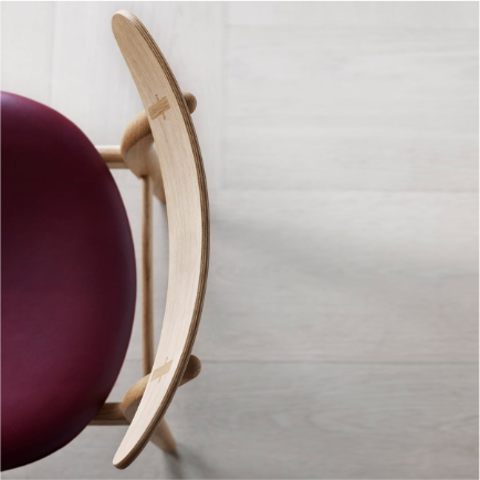 ウェグナーならではの意匠が随所に見られます。さらにバックレストは、成形合板製のゆったりとした座面と相まって、素晴らしい使用感と高い機能性を創り出すよう考慮されています。