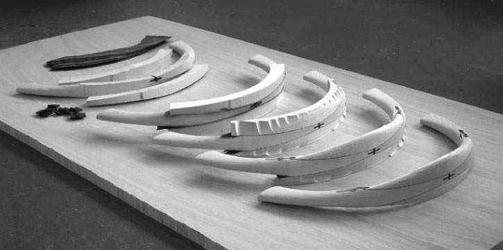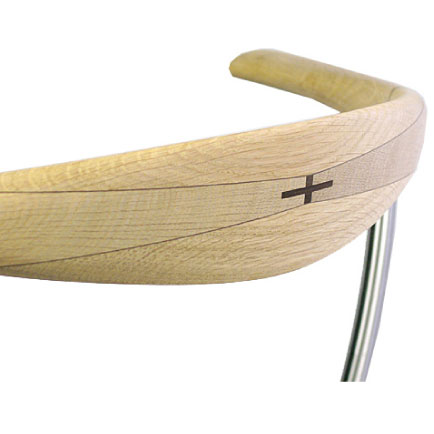 十字にデザインされた中央の契りに加え、上下に色の異なる化粧板を挟み込むことにより、単純になりがちな接着箇所をデザイン性の高いものへ昇華させています。
