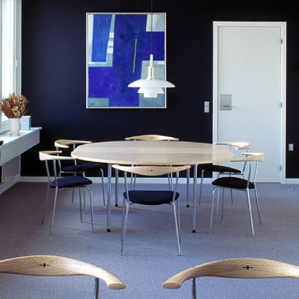 インガ夫人が最もお気に入りの、このダイニングチェアーは、アームとテーブルの高さが同じ高さになるように設計され、食事の時に手の位置を変えても肘が安定するようにというウェグナーのこだわりが詰まっています。