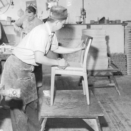 一見すると何も変哲のないシンプルな椅子ですが、よくみるとディテールに 凝っていることがわかります。