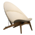 1954年にデザインされたPP530タブチェアは、当時としては先進的なデザインで、背面が2つの個別の形状で構成される曲面シェルであるため、製作にはとても高度な技術が必要となり、成型合板の技術と伝統的な無垢材の加工を融合し、背もたれに金属製の角度調整機構を加えるといったウェグナーの持つ技術を総動員して製作された椅子です。