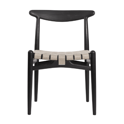 この度の復刻ではウェグナーのオリジナル図面を忠実に再現し、リネンのウェービングで手織りされた座面と、ウェービングの張力を維持するためにデザインされた特徴的なフロントレールが形作られたのです。